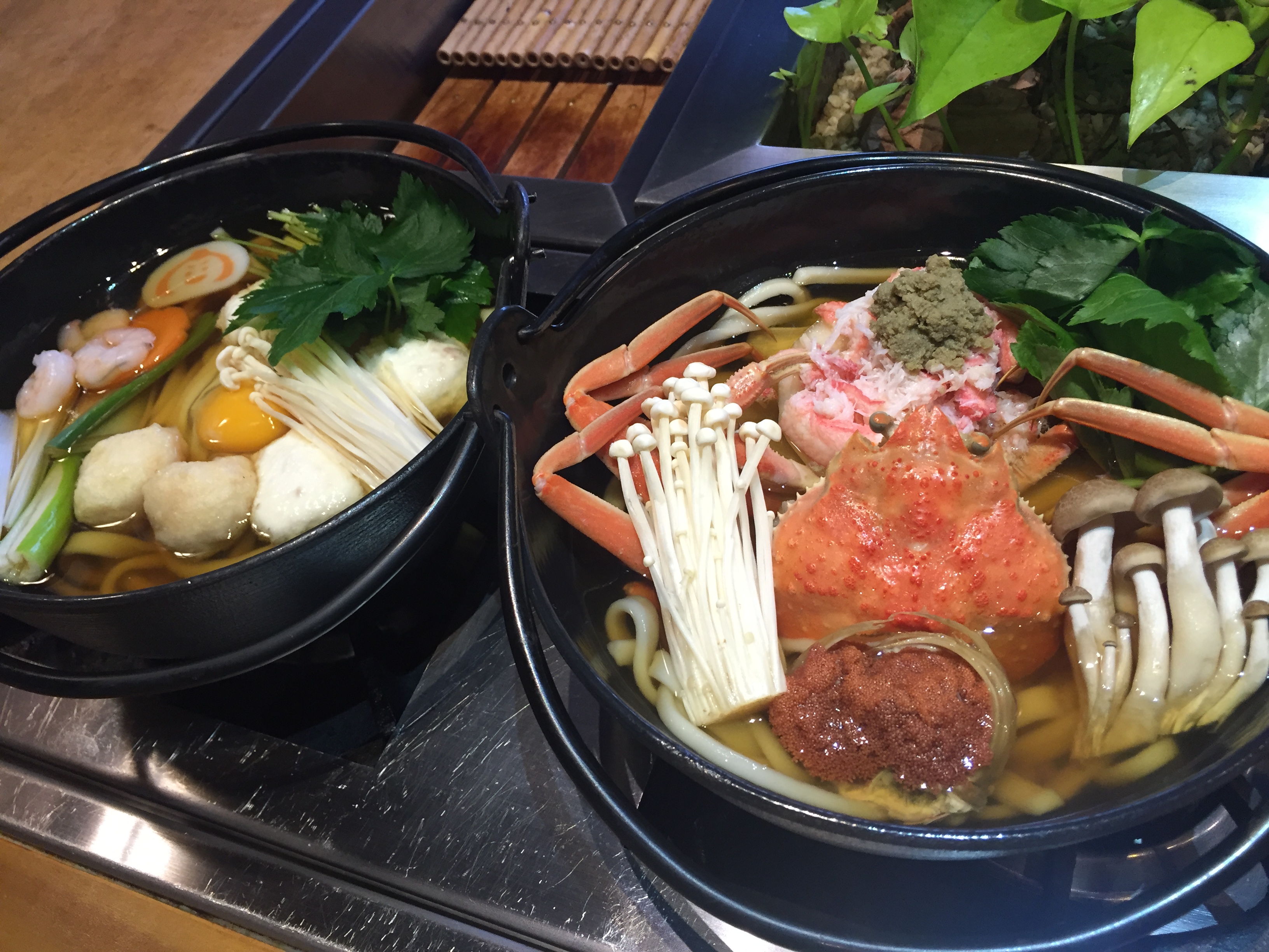 【蟹うどん鍋】蟹漁解禁になりました!香箱蟹丸ごと入ったおうどんです。季節限定:蟹漁解禁日〜年末頃まで\4580(税込)【加賀丸いもうどん鍋】いよいよ今年も新丸いものが出来上がる季節です。季節限定11月中旬〜3月頃まで\2880(税込)昼11:00開店 →13:50L.O 15:00閉店夜17:00開店 →19:50L.O 21:00閉店
