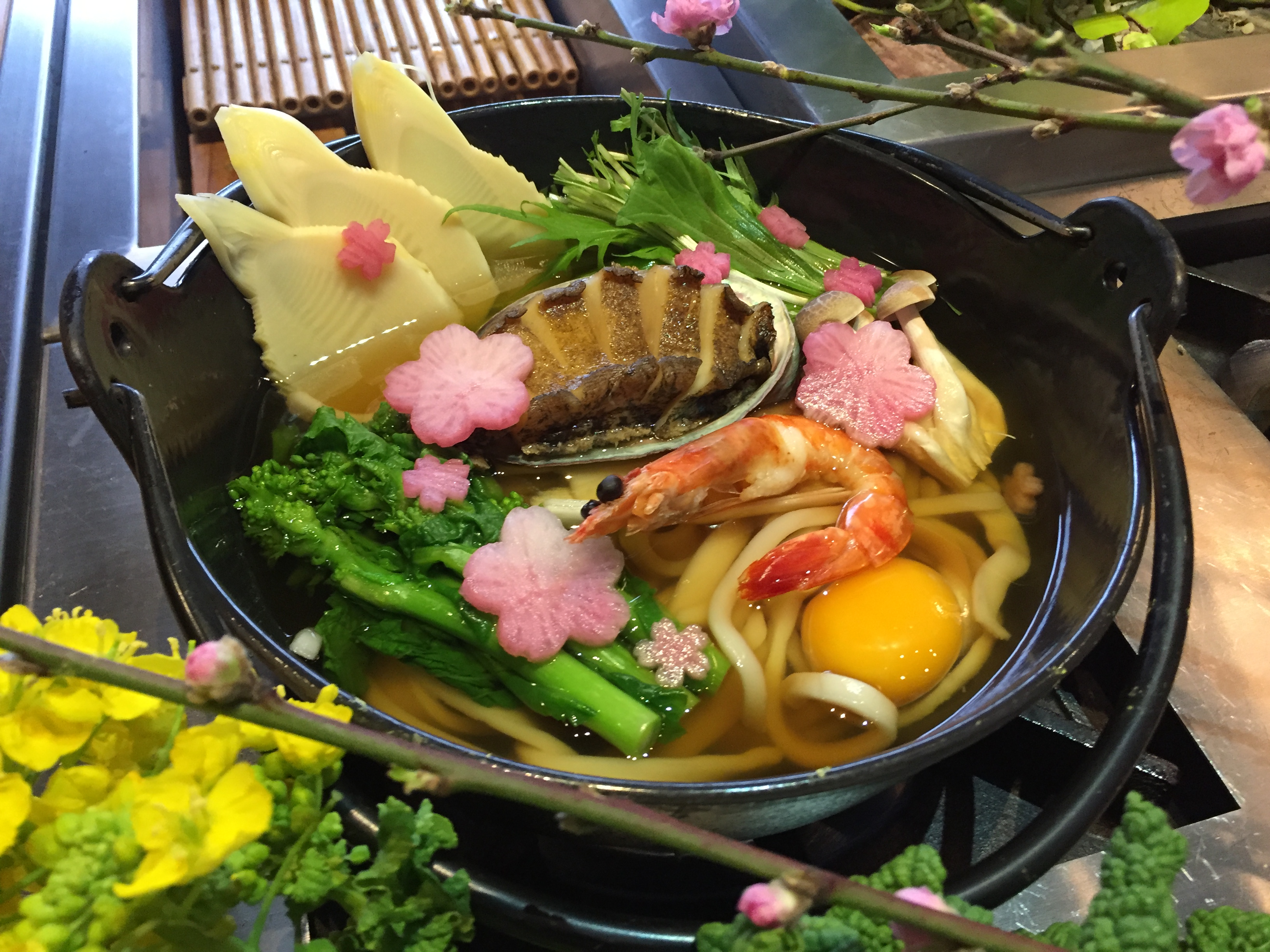 2月28日、3月1日、2日、3日の4日間限定特別メニュー【桃の節句ひなうどん鍋】※数に限りがございます柔らかく煮込んだアワビ、海老、菜の花、タケノコ(今年はオモテ年なので最高に美味しいです)などが入ります。甘酒も付きます。\3680(税込)期間中にご注文されたお客様全員にお鍋無料券、花の鉢植、ひなあられ等の景品がその場で当たるくじ引きが付きます。【開店時間】昼11:00開店 →13:50L.O 15:00閉店夜17:00開店 →19:50L.O 21:00閉店